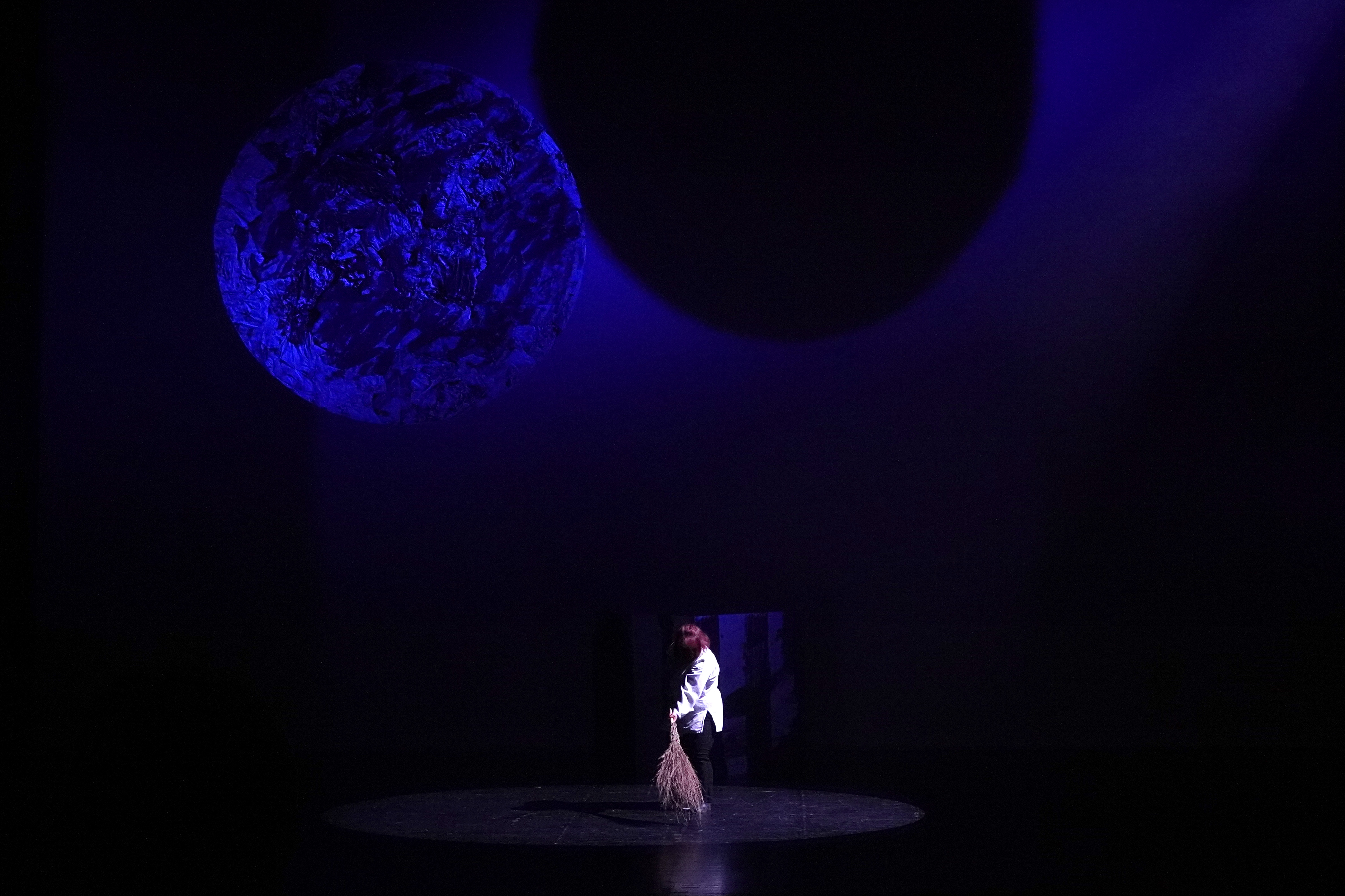 長「本番かぁ…今日できた感じでしたよね。まさかここまでになるとは予測していなかったので。私もなんでこんなに道具を作ってしまったんだと思って。舞台に初めて道具をのせたのは23日だっけ。本格的にやり始めたのは一昨日。そこについてくる市民の能力の高さにびっくりしていて。今日とかも本番前のときも一日経ったら忘れるよねって話していたことがちゃんとできているんですよ。それぞれがちゃんと責任もって道具を作っていたり、あと自分で絵を描いた道具だったので愛情のこもった道具になった。すごく体ともリンクしていて丁寧に扱ってくれていて…。だから色々な過程が生んだリズム。やらされている感じじゃなくて、自分がやるってなっていたのがいいリズムになったのかなと思います。」